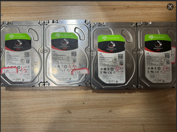 群辉DS918NAS网络存储 4块4TB盘组RADI5,突然断电,其中3块盘灯就报错,检测发现3块硬盘磁头损坏,通电明显听到滋滋异响,这种情况非常糟糕,如果最后掉线的硬盘没有修复成功,这个数据就恢复不完整,可能直接就是失败。